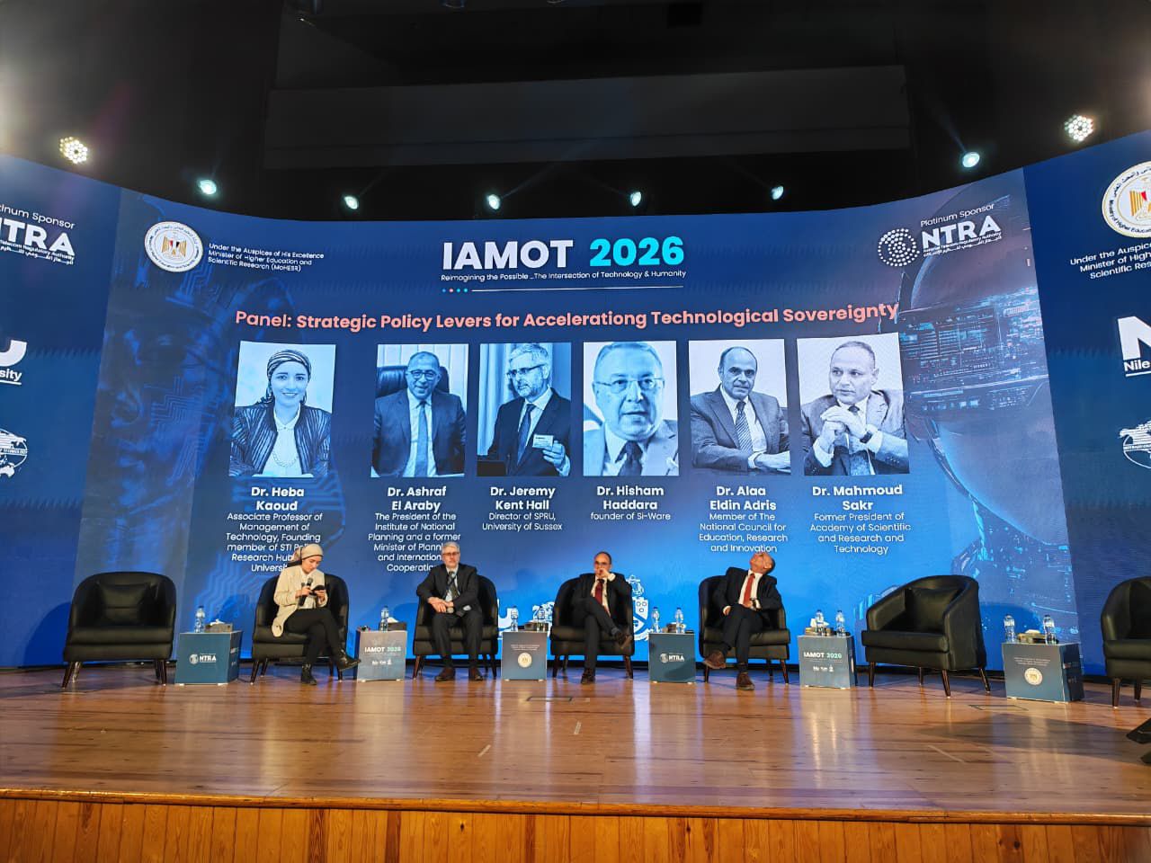 وشارك في الجلسة كل من البروفيسور جيريمي كينت هول، مدير وحدة أبحاث سياسات العلوم والتكنولوجيا SPRU في University of Sussex بالمملكة المتحدة، والأستاذ الدكتور علاء الدين إدريس، عضو المجلس الوطني للتعليم والبحث والابتكار، والأستاذ الدكتور محمود صقر، رئيس أكاديمية البحث العلمي والتكنولوجيا سابقًا، فيما أدارتها الدكتورة هبة قعود، الأستاذ المساعد في إدارة الابتكار وريادة الأعمال بجامعة النيل.